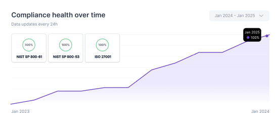 Incident data can be cross-mapped into ISO 27001, NIST 800-53, and SOC 2 reporting to support broader compliance needs.